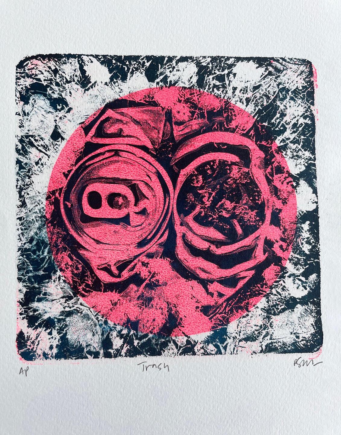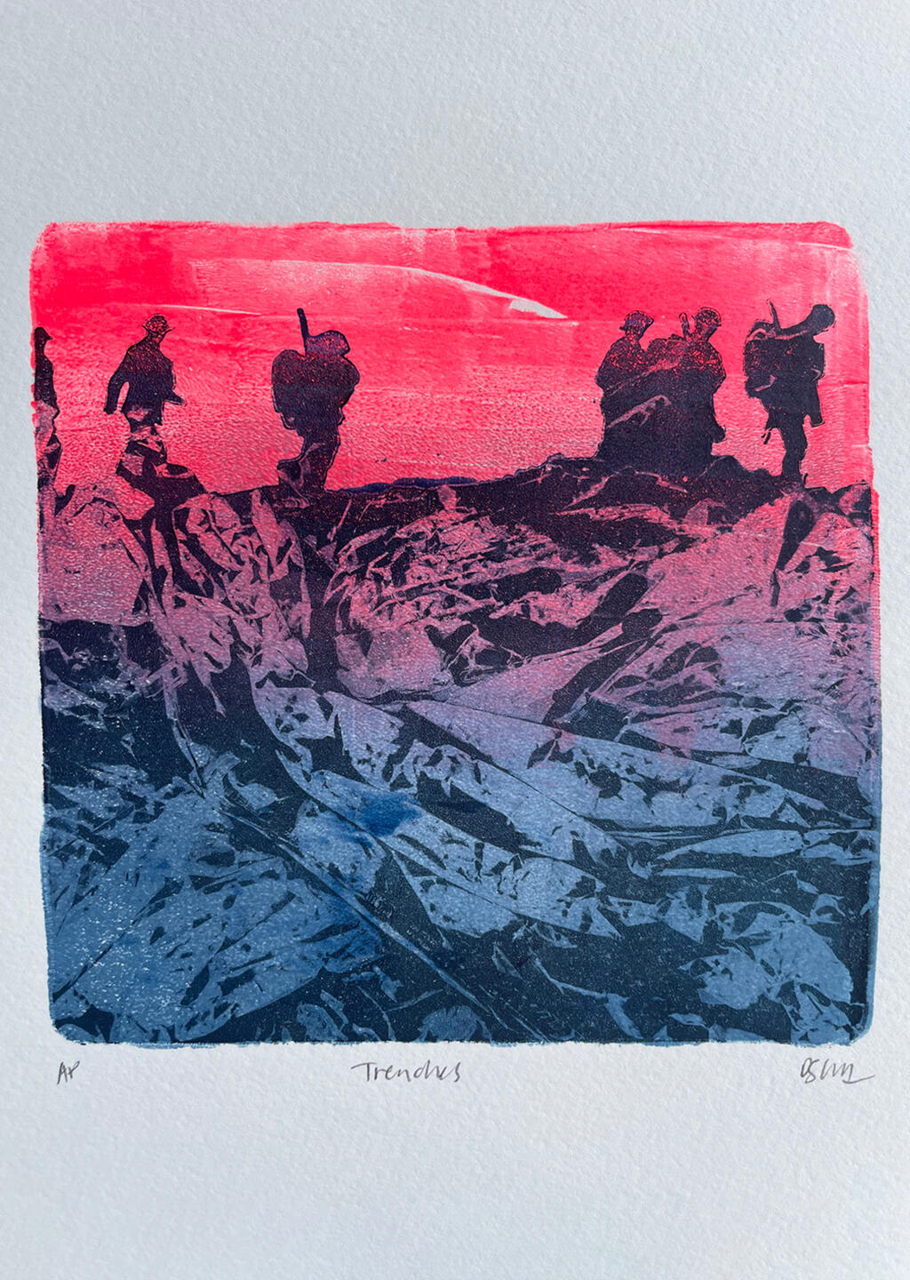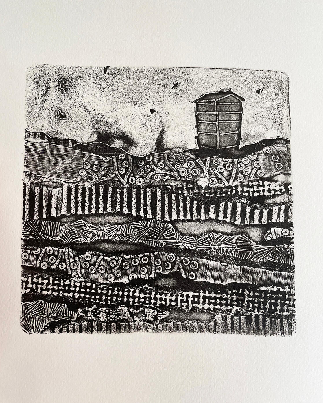 I began my journey in the arts studying fine art at college, where I developed a particular love for printmaking. This passion laid the foundation for my career as a professional graphic designer, crafting visuals that communicate and inspire. Along the way, I earned a first-class degree in graphic design, further refining my creative skills.Today, I continue designing for clients while sharing my expertise as an A level graphics teacher at a local further education college. Being back in an art department rekindled my love for printmaking, prompting me to return to my creative inky roots.Now, I explore a new dimension of artistry through gel plate printing — a hands-on, experimental process that celebrates imperfection and spontaneity. My work draws inspiration from the layered beauty of the world around us: organic forms found in nature, the raw textures of discarded materials, and the echoes of history. Each piece is a unique fusion of collagraph patterns, industrial texture, and historical narratives.
